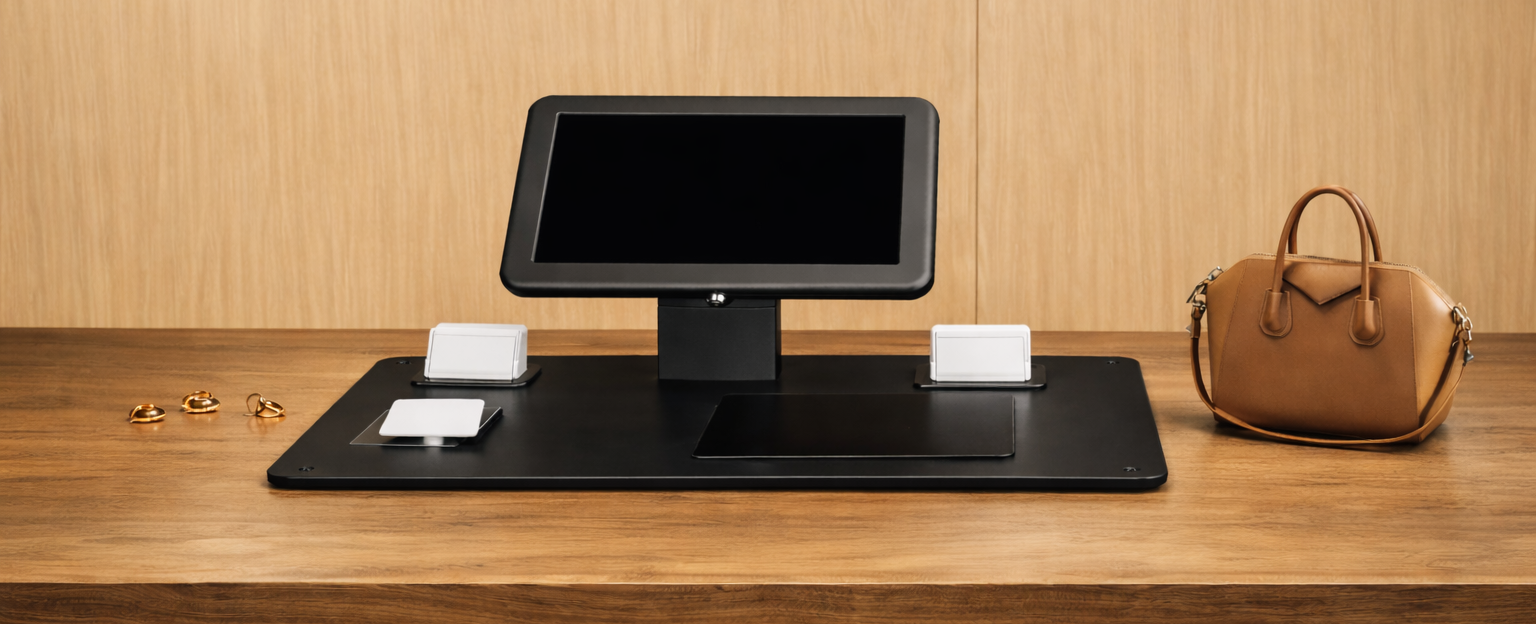 Minimal design. Maximum durability. Compatible with Apple, Samsung, and Microsoft devices. Choose screw-mounted or freestanding — for table or wall setups.